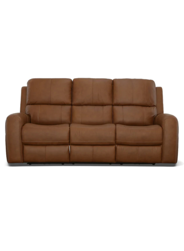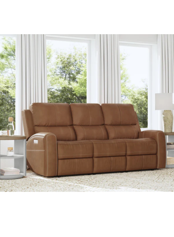 Upgrade your relaxation experience with the Linden Power Reclining Sofa by Flexsteel. Designed for ultimate comfort and durability, this sofa features power headrests, power lumbar support, and Zero Gravity recline technology, which alleviates spinal pressure and promotes better circulation. Built with Flexsteel’s patented Blue Steel Spring™ system, it ensures long-lasting support without sagging. The plush, divided back cushions, padded track arms, and cross-stitch detailing add a modern and sophisticated touch. Dual power controls on each side include USB ports for added convenience. Available in two luxurious top-grain leather options, the Linden is the perfect addition to any living space.