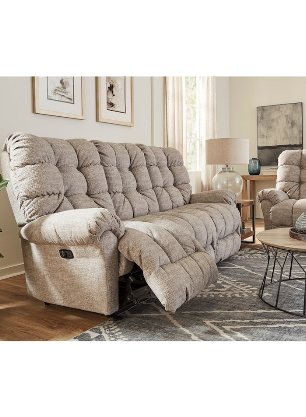 The Corey Reclining Sofa (S715) by Best Home Furnishings offers exceptional comfort and traditional style, making it a perfect addition to any living space. This sofa features an abundance of pillow fibers filling the back and chaise lounge, with sewn-in channels that cradle and support your body. The firmer armrests provide the necessary support for reading or scrolling on your device. Choose between a manual reclining mechanism with an outside handle or upgrade to a power recline option, which includes a stylish two-button switch with a built-in USB port for charging devices. For ultimate luxury, the power recline can be enhanced with a Power Tilt Headrest, offering adjustable head and neck support, and comes with an exclusive Comfort Dial featuring an additional USB port. With over 700 fabric options available, the Corey sofa can be customized to complement any décor.